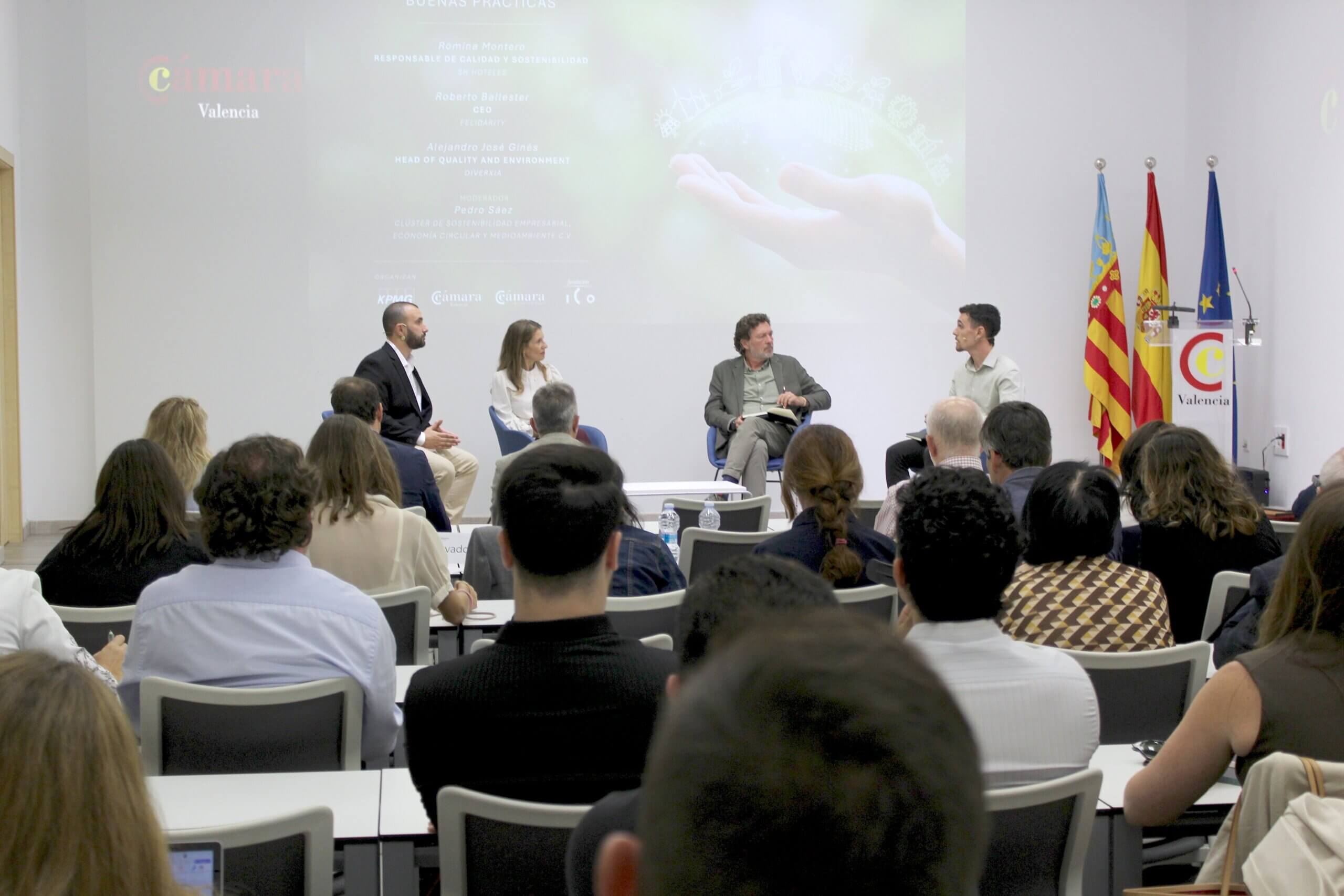 Han participado en la mesa redonda “Exposición de buenas prácticas”, moderada por Pedro Sáez del Clúster de Sostenibilidad Empresarial de la Comunidad Valenciana, las empresas SH Hoteles, Felidarity y Diversia.